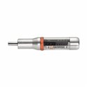 USAG 824 B1 Giraviti dinamometrici per produzione a taratura fissa • Serie di giraviti da produzione, ideali in ambienti dove devono essere sempre ripetuti gli stessi valori di serraggio • La coppia desiderata deve essere pre-impostata con una bilancia torsiometrica • Da utilizzare in abbinamento agli inserti della serie FACOM "0" con attacco da 4 mm • U08240012 Da utilizzare in abbinamento agli inserti della serie 660 o, tramite raccordo, alle chiavi a bussola della serie mano da 1/4" • Precisione ± 6% del valore di coppia impostato • Disinnesto automatico al raggiungimento della coppia impostata • Riarmo automatico dopo 120° • Fornito con chiave di regolazione e certificato di collaudo Capacità Ncm 4÷20 Capacità lbf.in 0,35÷1,7 Ø 21 L mm 96,5 Peso gr 75
